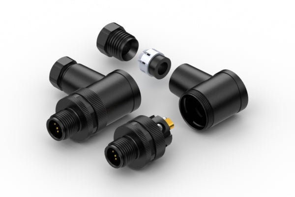 Connector, M12 A-code plug, 5 pin, 12xL39 mm, 90° gold plated, assembly style, screw terminal, IP67, plastic thread