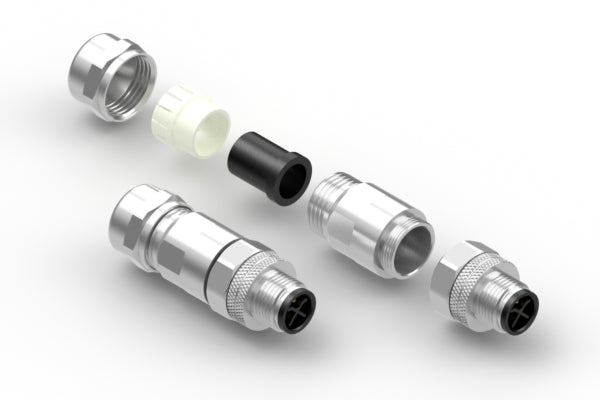 Connector, M12 S-code plug, 3 pin, 12xL51 mm, gold plated, assembly type, solder cup, IP67, shielded